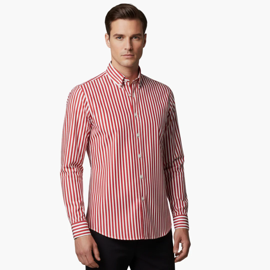 Chemise homme rayée à col boutonné et manches longues
