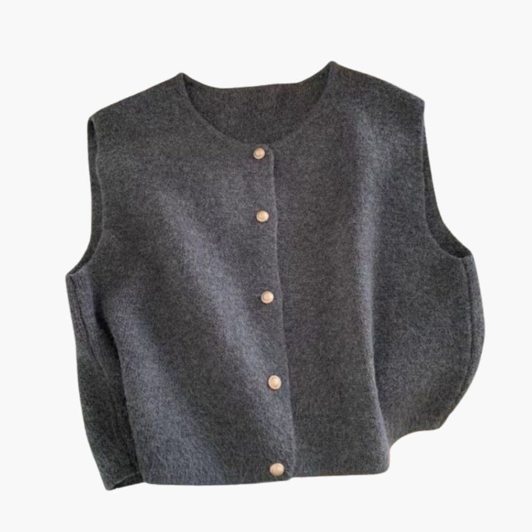 Gilet sans manches pour femme avec fermeture à boutons devant.