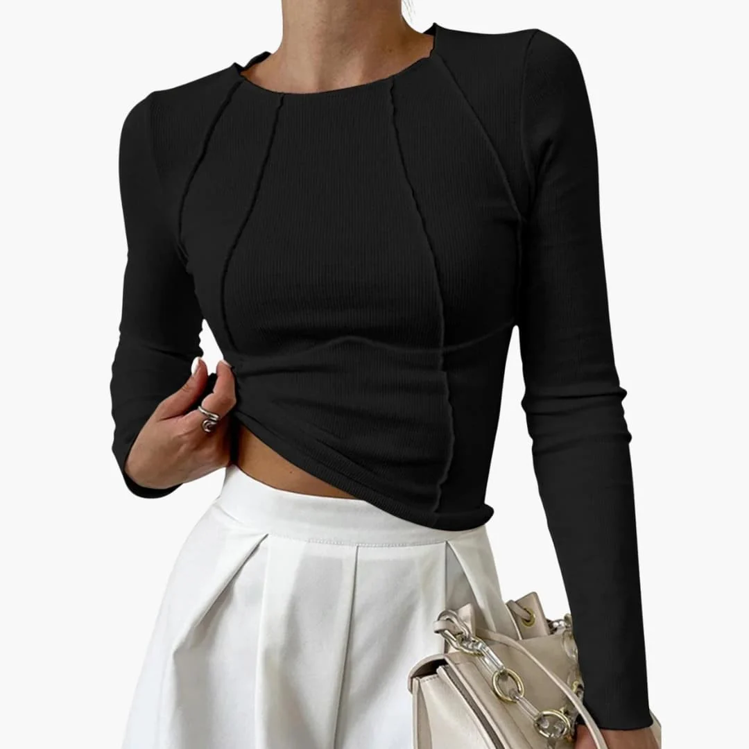 Haut femme ajusté à manches longues avec col rond