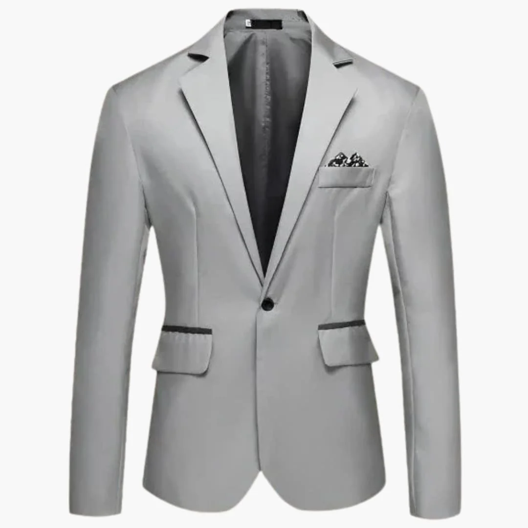 Cette veste pour homme présente un revers cranté et une fermeture un bouton à l’avant. Elle comprend deux poches à rabat et une poche poitrine passepoilée. Les manches longues droites et la surface tissée unie assurent un aspect net et structuré, adapté aux ensembles habillés ou semi-formels.