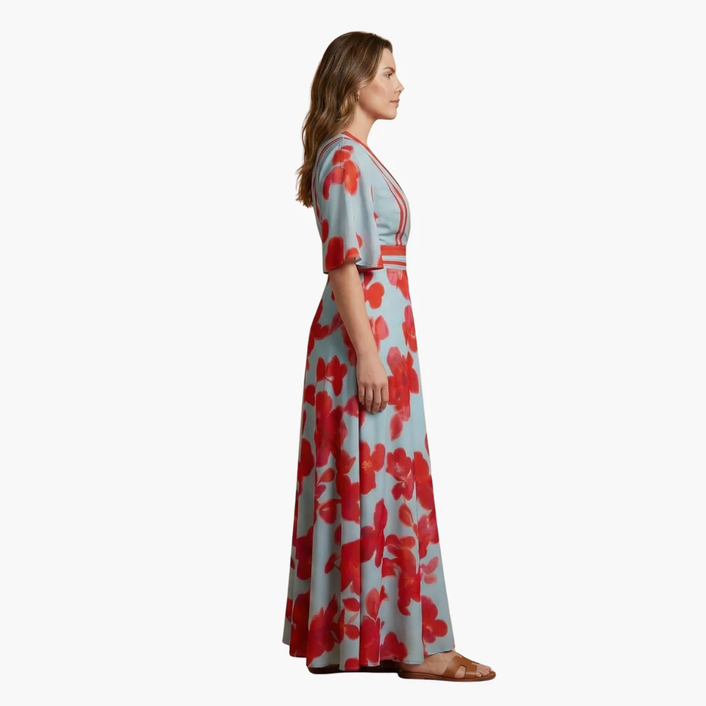 Robe longue à fleurs avec col en V.